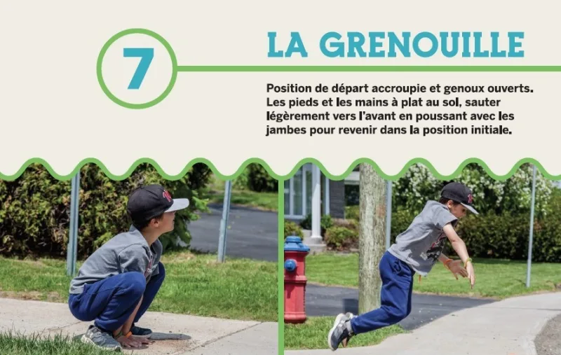 On y retrouve des exercices simples utilisant le marquage au sol comme "station d’entraînement ". Chaque fois que les élèves rencontrent de petits pas, ils sont invités à exécuter une figure faisant appel à leur équilibre, développant leur souplesse ou encore offrant un défi d’endurance.