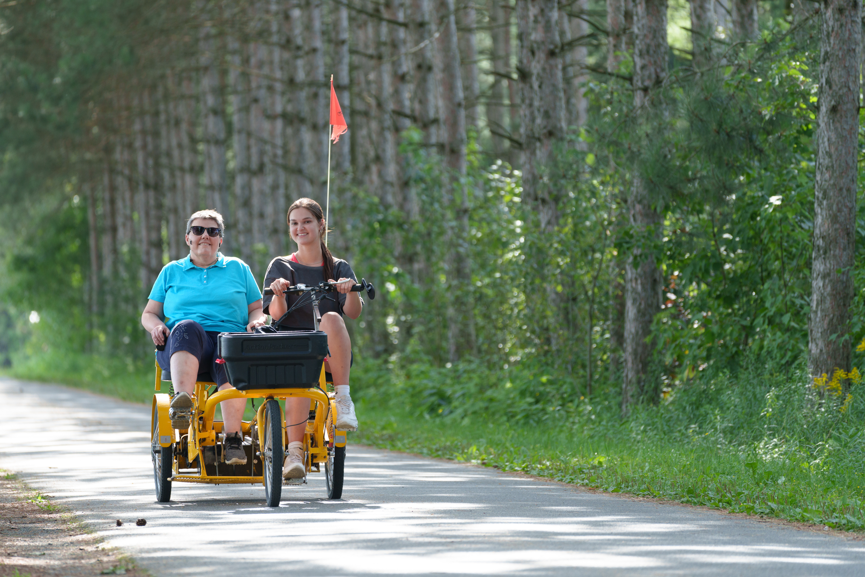 Le PAL est un programme novateur ayant pour objectif d’accompagner une fois par semaine des personnes vulnérables dans la réalisation d’une activité de leur choix. Plus de 20 équipements adaptés tels que le skivel et le tandem côte à côte font partie des équipements adaptés utilisés par le Programme d'accompagnement loisir. Cette mesure permet de briser l’isolement social et de développer un mode de vie équilibré dans un contexte d’accompagnement sécuritaire et bienveillant.
