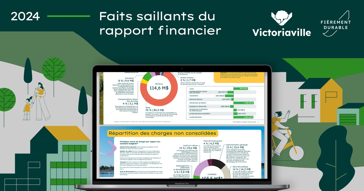 Le rapport financier 2024 de la Ville de Victoriaville peut être consulté en ligne au vic.to/finances. Pour mieux connaître les actions réalisées en cours d’année 2024, le rapport de la direction générale peut être consulté au vic.to/gestion.