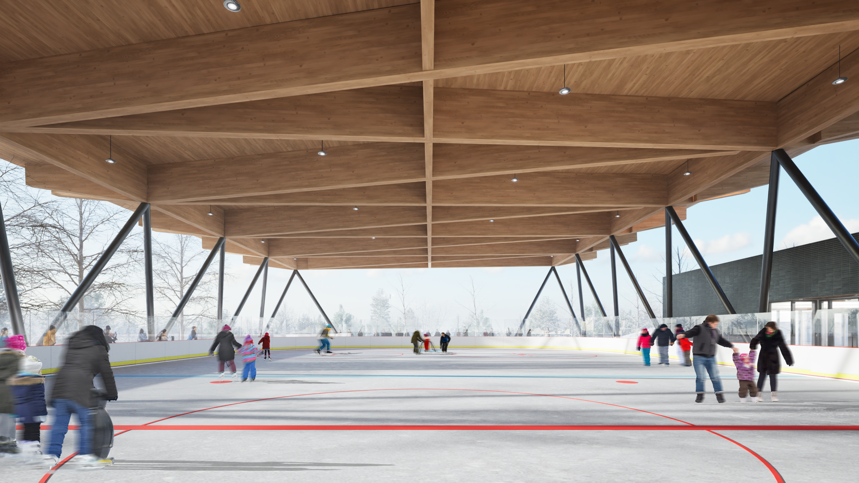 La surface réfrigérée et le bâtiment de service seront aménagés en bordure de la rue des Nations sur la surface actuelle du terrain de baseball. Ce bâtiment de service servira à tous les utilisateurs du parc tels que les amateurs de ski de fond ou de randonnée en forêt. Les travaux devraient s’amorcer au printemps 2025 et être menés à terme au printemps 2026.