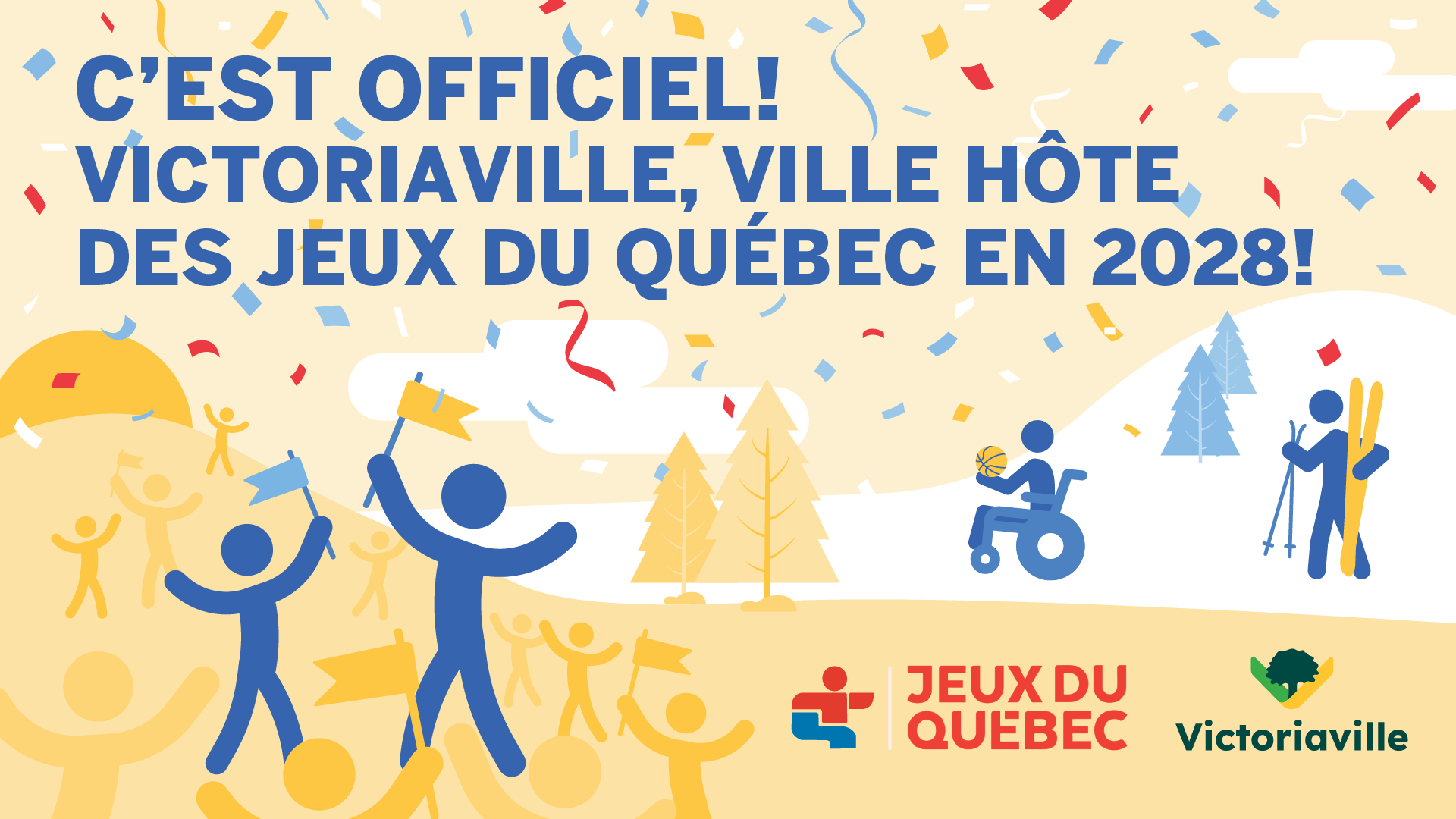 « Wow! Wow! Wow! La fierté qui animait le conseil municipal, le comité de mise en candidature, les partenaires et les citoyens prend une toute nouvelle ampleur avec cette annonce! Depuis des mois, les gens du milieu nous questionnaient à savoir quand nous aurions la confirmation! Là, c’est officiel! Victoriaville et sa région rayonneront en mars 2028 alors qu’elle accueillera les athlètes des quatre coins du Québec dans le cadre de la 62e Finale des Jeux du Québec. La décision de SPORTSQuébec est le fruit d’un travail d’exception du comité de mise en candidature, d’une réponse positive et instantanée des partenaires essentiels, d’un engagement sans équivoque du milieu des affaires, d’un appui soutenu des organismes du milieu et d’une indéniable mobilisation citoyenne. Je tiens à remercier du fond du cœur tout le monde qui a répondu présent au cours de cette aventure. Aujourd’hui, ce n’est pas la fin, mais bien le début d’une aventure qui nous mènera à recevoir cet événement sportif d’envergure, regroupant plus de 3 500 athlètes, chez nous en mars 2028 », a confié le maire de Victoriaville, Antoine Tardif.