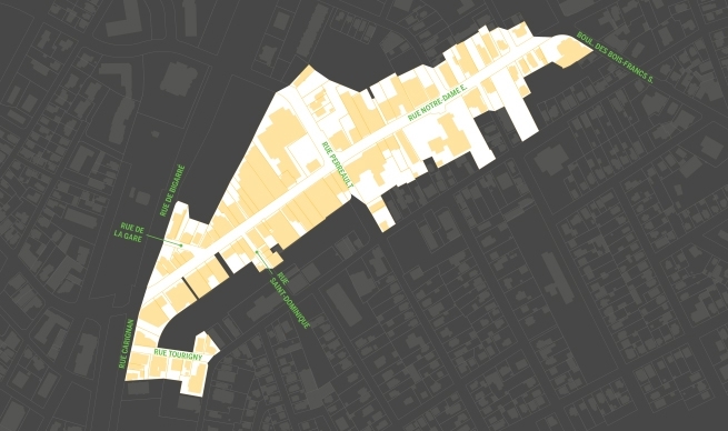 Le programme s'applique aux bâtiments admissibles situés dans le territoire défini (voir carte ci-dessous).