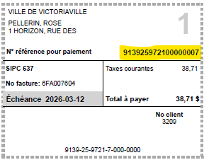 | TelPay Fournisseur ''VICTORIAVILLE (CITY) TAX'' |