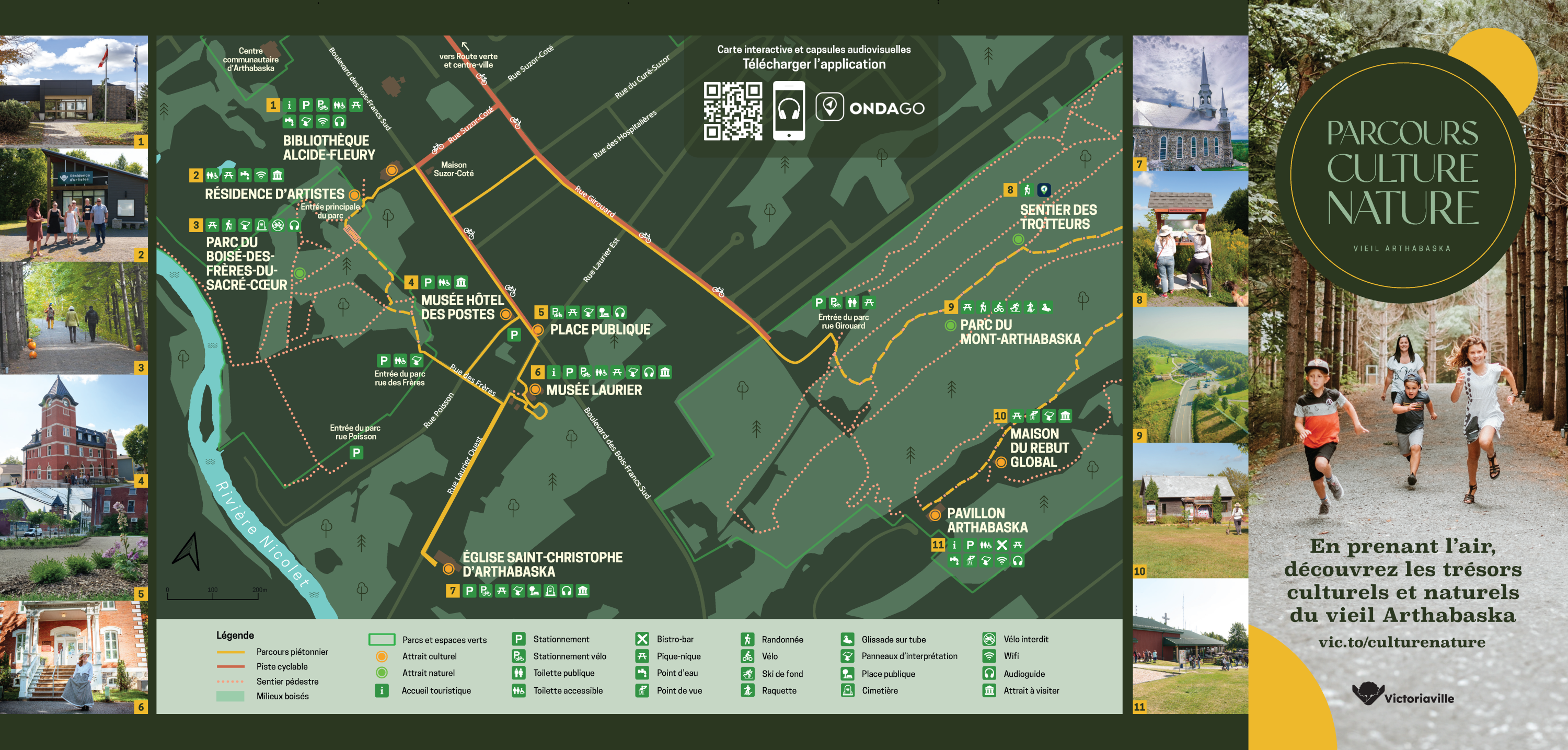 Le parcours Culture Nature est un circuit actif qui vous guide à travers le secteur enchanteur du vieil Arthabaska. L’ensemble des attraits sont reliés par un parcours pédestre interactif pour vous faire découvrir les richesses naturelles, historiques et artistiques du secteur.